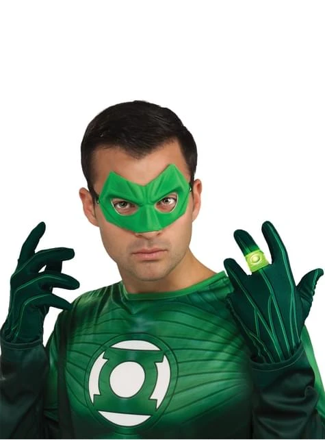 Incluye un anillo verde luminoso basado en el que lucia Hal Jordan en la película de 2011. Está disponible en talla única para adultos.