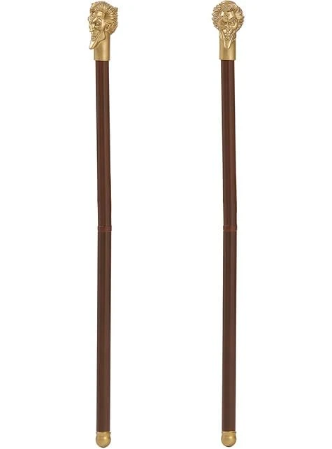 Si como fan del Joker, quieres vestir como él durante el próximo Carnaval o en esa fiesta de disfraces a la que te han invitado, no puede faltar en tu disfraz de Joker el genuino bastón de Joker, acabado con un pomo dorado con la forma de su cabeza.