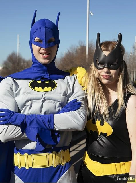 Este disfraz de Batman se compone de un completo traje musculoso gris con el calzón azul. Incluye también una capa azul con pasamontañas formando la máscara de Batman, un cinturón amarillo (el bat-cinturón) y los guantes y cubrebotas azules del superhéroe de Gotham. El disfraz de Batman The Brave and the Bold es de licencia oficial Warner Bros, por lo que está lleno de detalles muy cuidados como el original logo de Batman bordado en el pecho.