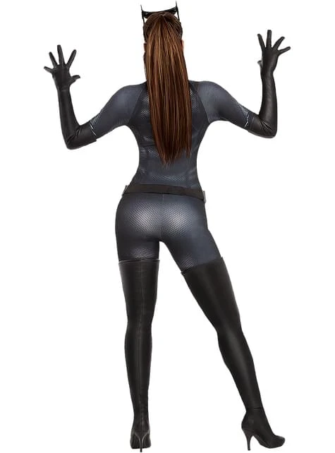 Como se trata del traje de Catwoman oficial no le faltan detalles y la calidad está asegurada. El disfraz incluye un increíble mono completo de color negro y gris pero sublimado, por lo que su realismo es mucho mayor. Además es elástico por lo que te podrás mover por los tejados de tu ciudad como la verdadera Catwoman.