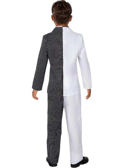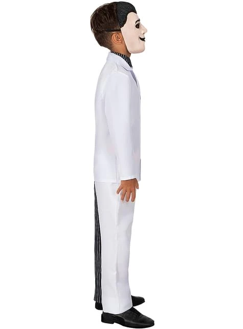 Incluye: Chaqueta con camisa y corbata incorporada, pantalón, máscara y moneda