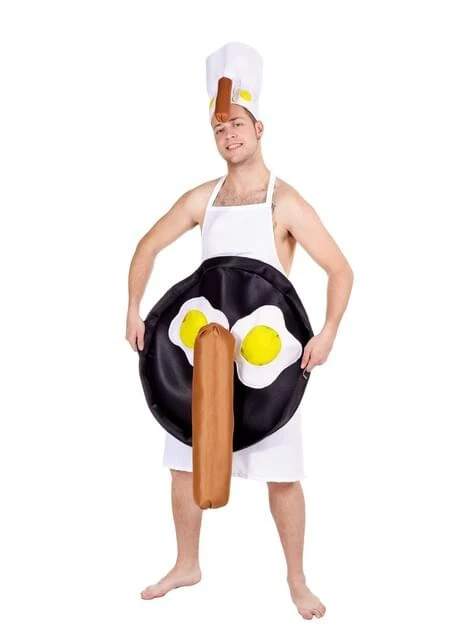 Incluye: delantal con plato huevos y salchicha y gorro con salchicha