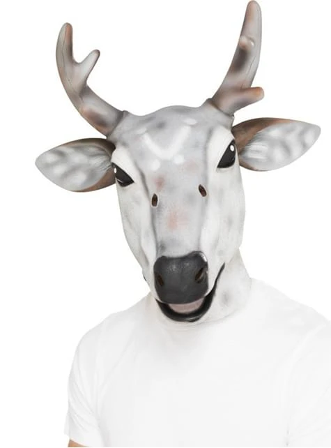 Conviértete en el animal navideño más adorable con esta máscara de reno blanco para adulto.