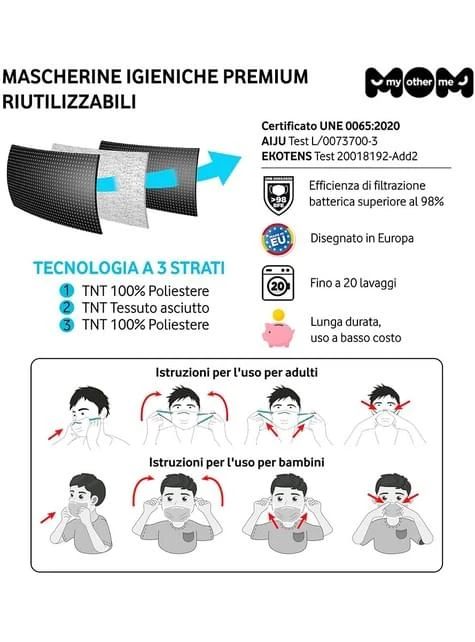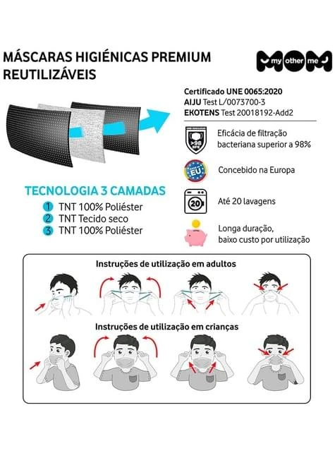 Incluye: 2 unidades con modelos diferentes de mascarilla higiénica reutilizable homologada con la normativa UNE 0065:2020.