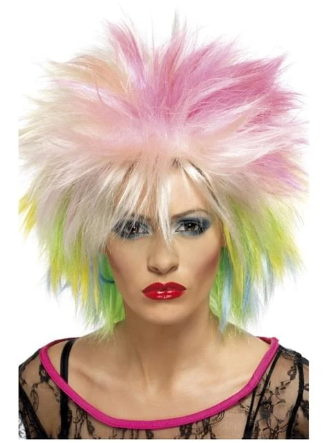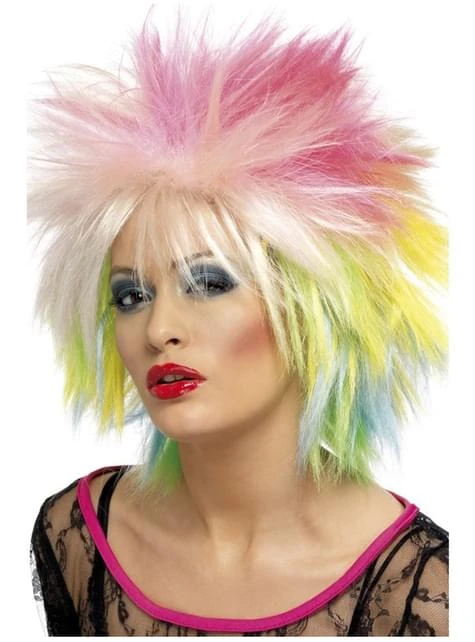 Trasládate a los años 80 y siéntete llamativa con esta peluca de los 80 multicolor.