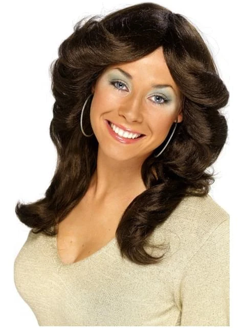 Estarás elegantísima con esta peluca de película de los 70 marrón.