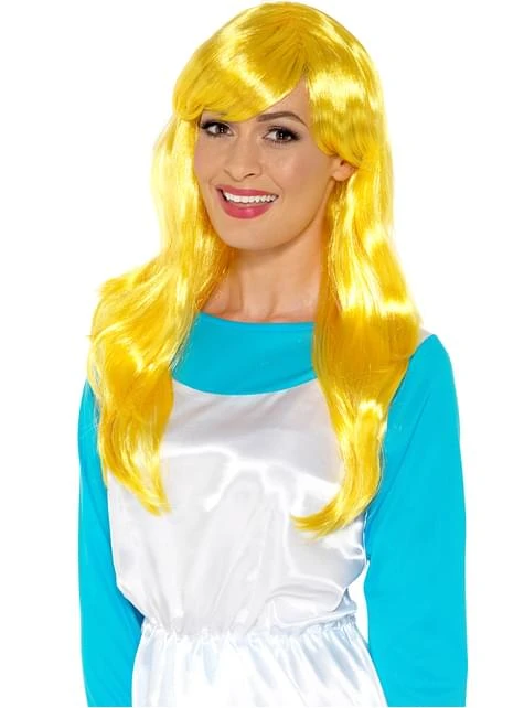 Una peluca amarilla ideal para tu disfraz de Pitufina, con el que seguro que lo pasas genial el próximo Carnaval o en la fiesta de disfraces.