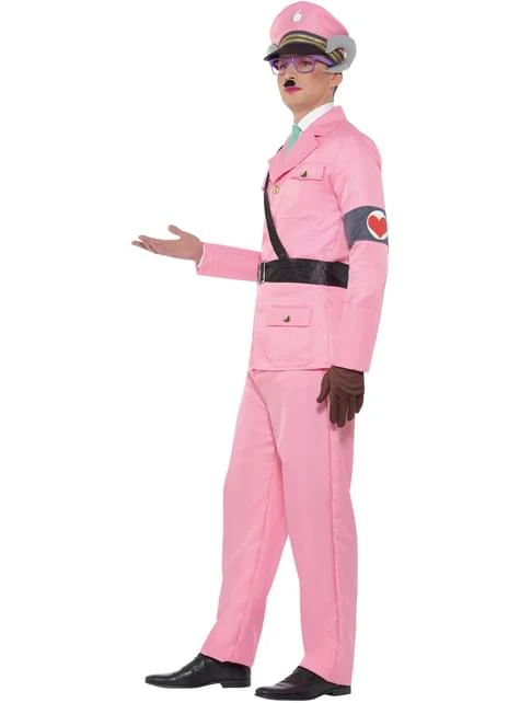 Incluye: chaqueta, pantalón, gorra con cuernos, gafas, corbata, guante, bigote y cinturón con banda